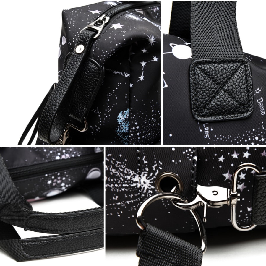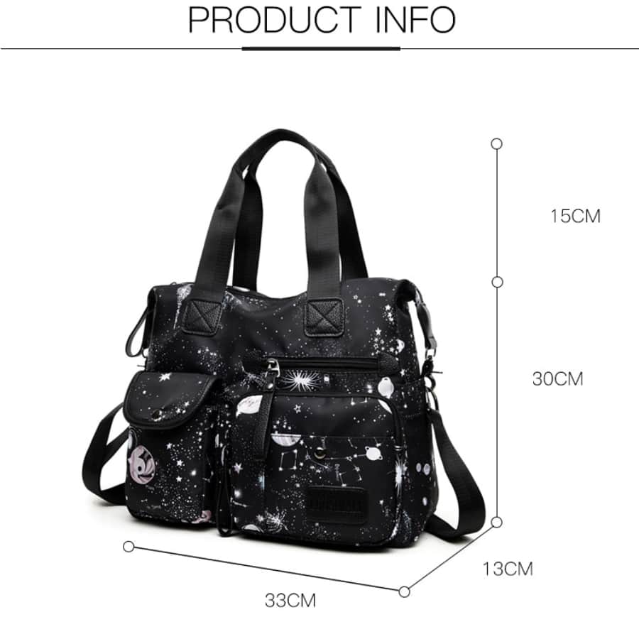 1개 대용량 인쇄 별이 빛나는 하늘 나일론 캐주얼 토트 & 크로스바디 백. 업무 및 여행용 멀티 포켓 여성 간호사 핸드백 숄더백 기저귀 가방 고딕 여행용 가방