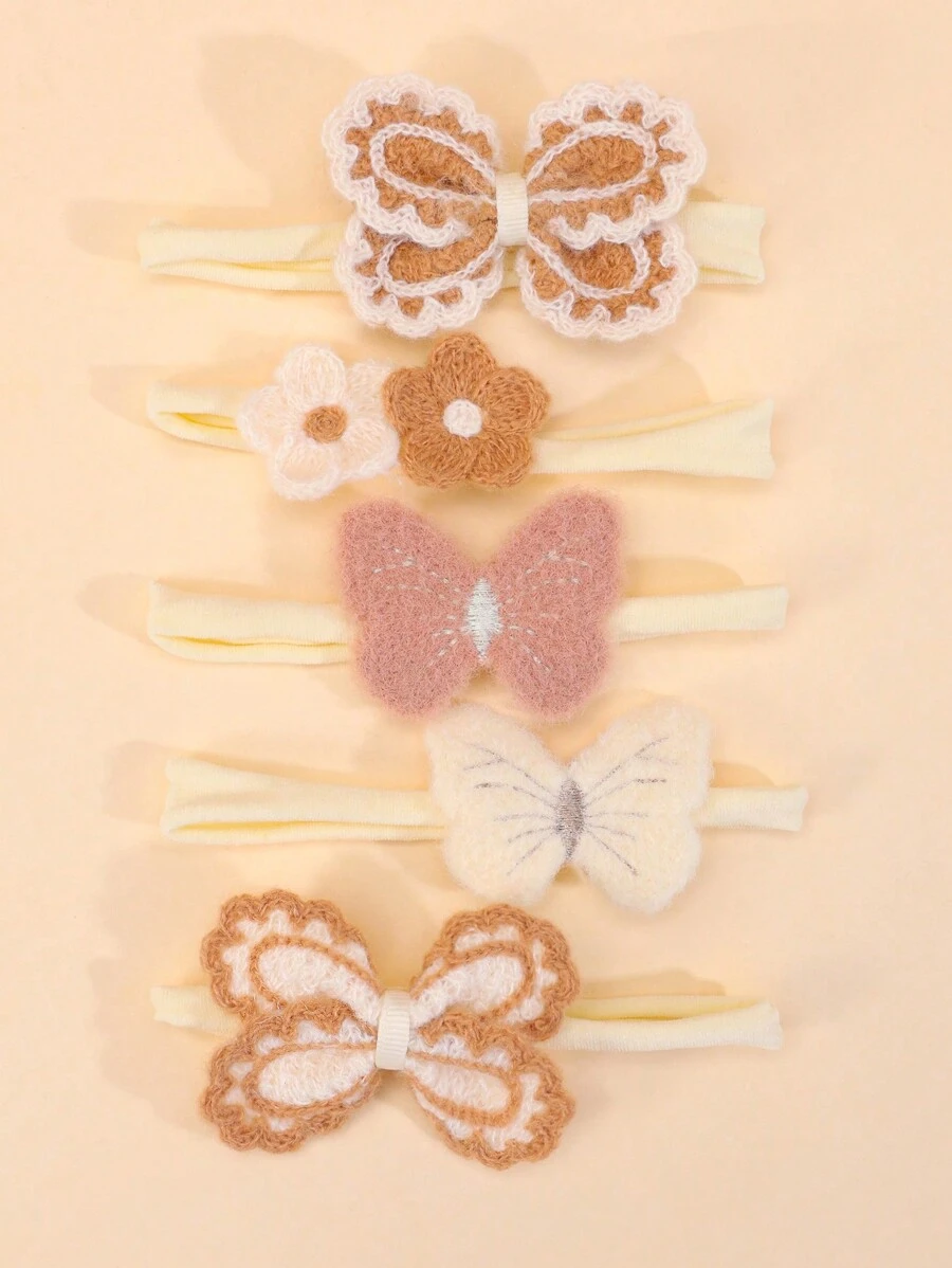 5pcs Furry Butterfly Headband for Girls,Winter Elegant Flower Hairband,Lovely Beige Elastic Hair Band,Kids Baby Hair Accessories.